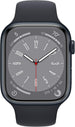 Apple Watch Series 8 (Cellular, 45mm). Designed with durability and style in mind, this model features a lightweight aluminum case and a comfortable Sport Band in a Regular size. With powerful health and fitness tracking, including temperature sensing, ECG, and Blood Oxygen monitoring, the Series 8 helps you better understand your well-being. Its crack-resistant front crystal, dust resistance (IP6X), and swimproof design (WR50) make it perfect for everyday wear.