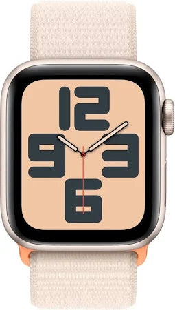 Apple Watch SE (44mm) – the perfect blend of style, performance, and essential features. Housed in a sleek Starlight aluminium case, this model comes paired with a soft, comfortable Braided Stretchy Pink Band, offering a unique and fashionable look for everyday wear.